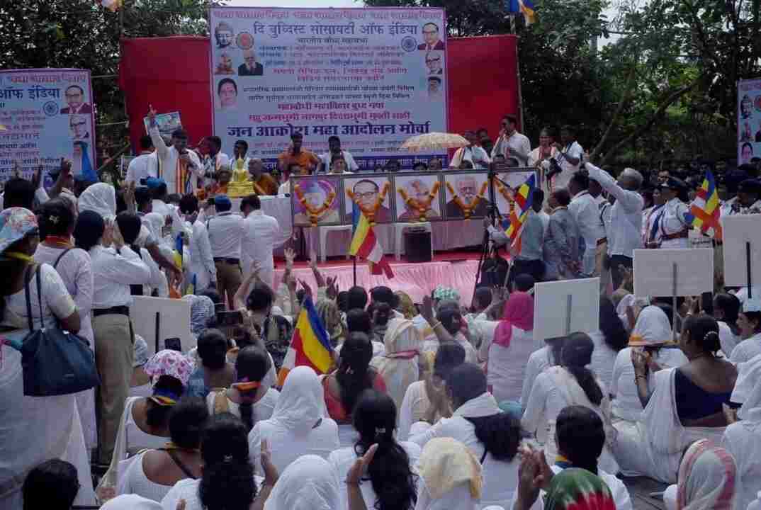 मुंबई : महाबोधी महाविहार आंदोलनाचे प्रणेते भंते अनागारिक धम्मपाल व पेरियार स्वामी जयंती तसेच भय्यासाहेब आंबेडकर स्मृतीदिनानिमित्त आयोजित जन आक्रोश आंदोलन मोर्चा मुंबईतील आझाद मैदान येथे पार पडला. दि बुद्धिस्ट सोसायटी ऑफ इंडिया (भारतीय बौद्ध महासभा), समता सैनिक दल, बौद्ध महासभा भिक्खु संघ आणि विविध आंबेडकरी संघटनांच्या माध्यमातून डॉ. बाबासाहेब आंबेडकर यांचे नातू आणि दि