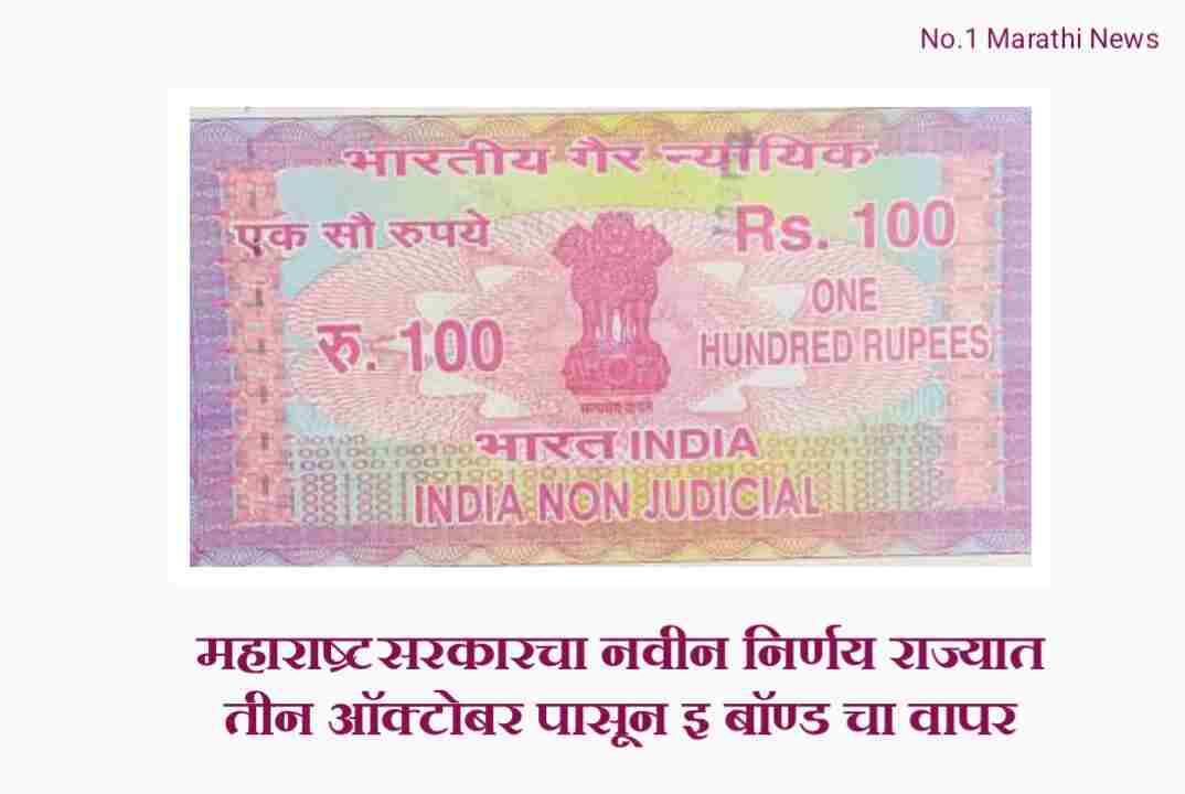 महाराष्ट्र सरकारचा नवीन निर्णय राज्यात 3 ऑक्टोबर पासून इ बॉण्ड चा वापर (E Bond Paper) लागू होणार